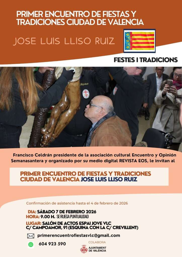 A esta realidad va a estar dedicado el Primer Encuentro de Fiestas y Tradiciones Ciudad de Valencia, que tendrá lugar el próximo 7 de febrero, sábado, organizado por la asociación cultural EOS (Encuentro y Opinión Semanasantera), presidida por  Francisco Celdrán, referente en la divulgación de la Semana Santa Marinera de Valencia, y recientemente incorporado a la Asociación Valenciana de Periodistas y Escritores de Turismo (AVPYETUR).