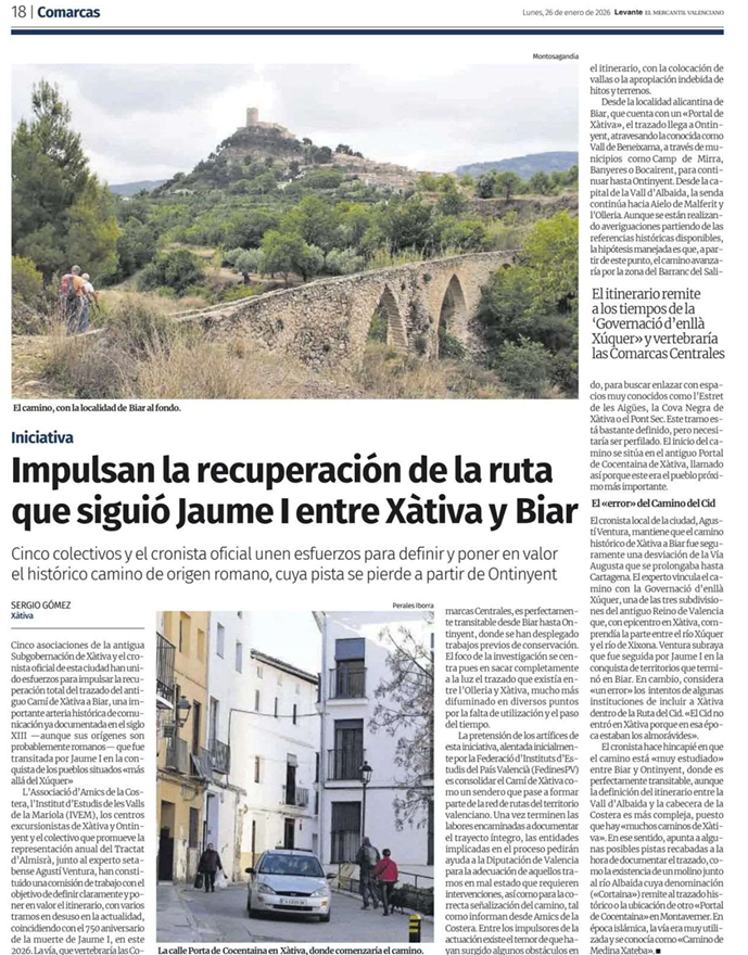 Revista de prensa: Proyectan recuperar una ruta medieval entre Xátiva y Biar